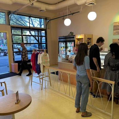 Smooth coffee ice cream made with Portland Coffee Roasters and swirled with chocolate ribbons, coconut cream, cane sugar, tapioca syrup, Portland Coffee Roasters cold brew concentrate (Arabica coffee, water), vanilla extract, chocolate (cane sugar, water, cacao powder, French vanilla flavor concentrate, cacao butter, pink salt, and guar gum), sea salt, and carob bean gum.