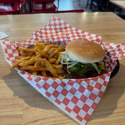 Contains burger bun, hot honey, and impossible beef patty. We suggest removing the honey.